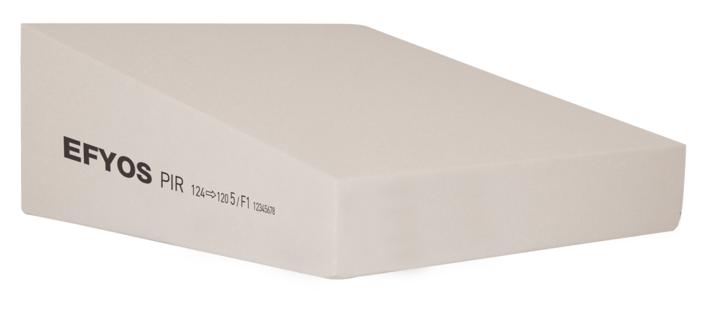 EFYOS Gefälle ist eine unkaschierte Dämmplatte aus PIR-Hartschaum und ist als gefällelose Planplatte oder Gefälleplatte lieferbar.