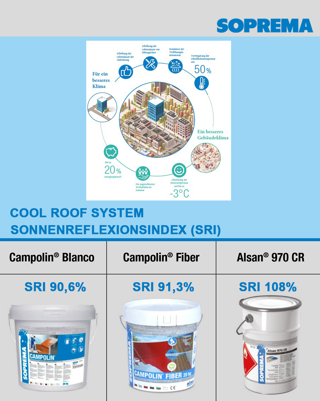 SOPREMA hat hier mit seinem COOL ROOF SYSTEM tolle Lösungen um im Bereich Flachdach energieeffizienter zu sein.